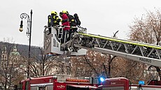 V Praze simulovali požár právnické fakulty, figuranti lezli oknem na plošinu jeřábu![]() |