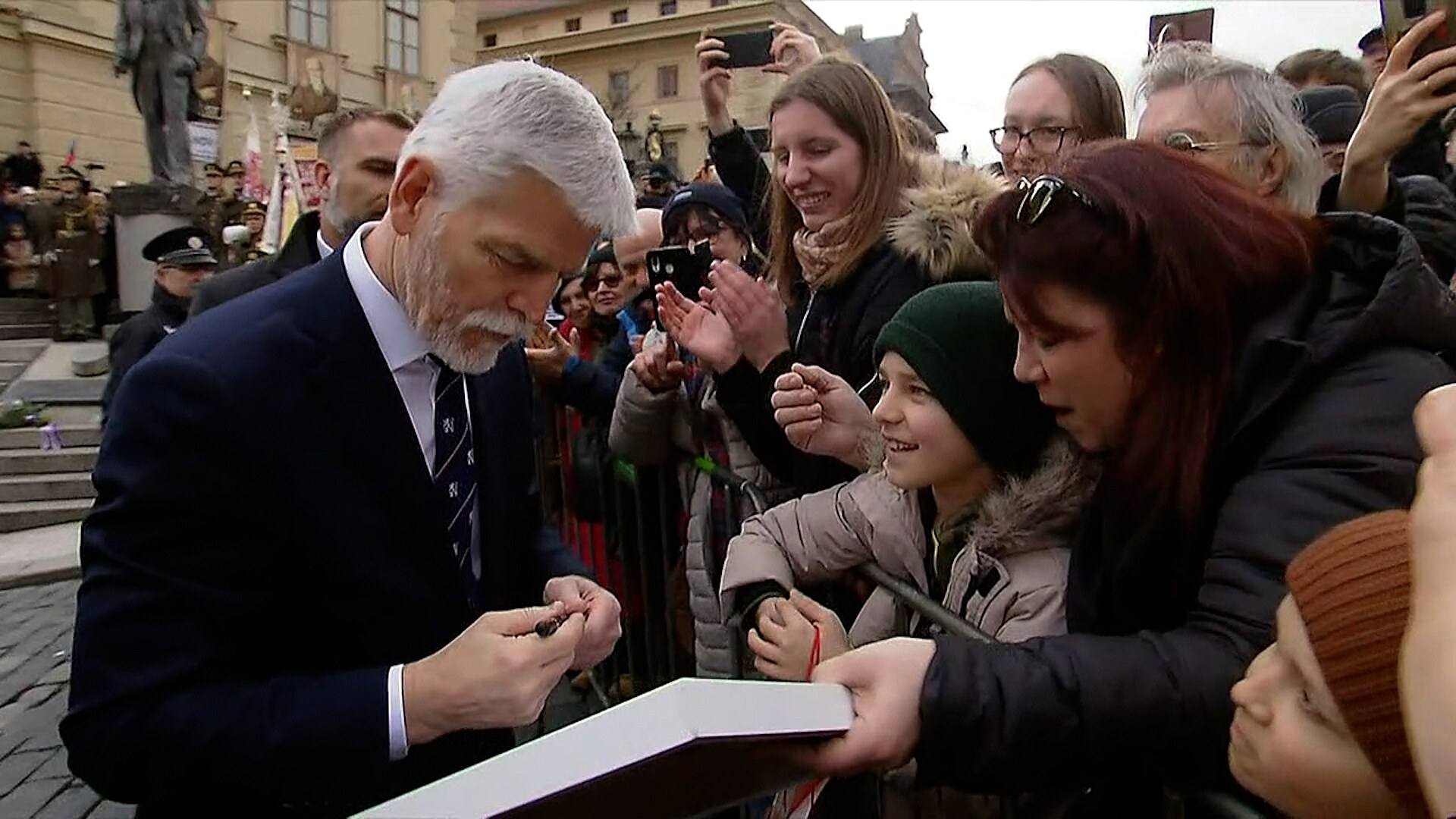Na Hradčanské náměstí pak Pavel přišel sám, bez doprovodu manželky. Nejprve se poklonil památce TGM, poté se zdravil s fanoušky. Na prezidenta se stály fronty jako na sportovce či umělce, každý si ho chtěl vyfotit a šťastlivci si toužili i „sáhnout“. Pavel se snažil vyhovět co nejvíce lidem. Potřásl si s nimi rukou, rozdával podpisy, udělal několik „selfie“.