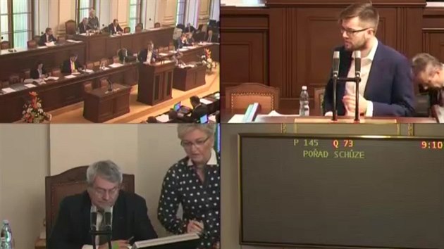 Šéf poslaneckého klubu Pirátů Jakub Michálek navrhl, aby o zbrzdění nárůstu platů poslanci hlasovali 14. listopadu. Šéf KSČM Vojtěch Filip, který v tu chvíli řídil schůzi, ho upozornil, že v ten den to nejde, protože lhůta pro projednání ve výborech uplyne až o den později.
