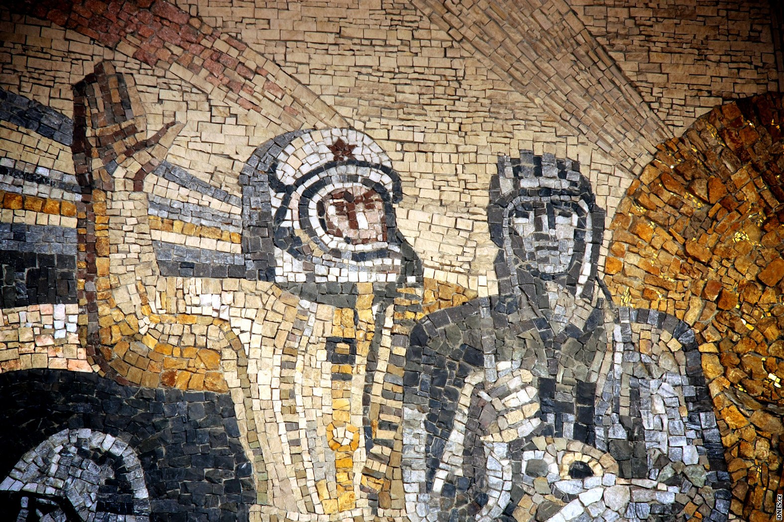 Jedna z mozaiek je dosud i na skladu lékařského materiálu. Jsou na ni operující lékaři. Dominuje jí obří ruka se srdcem v dlani.