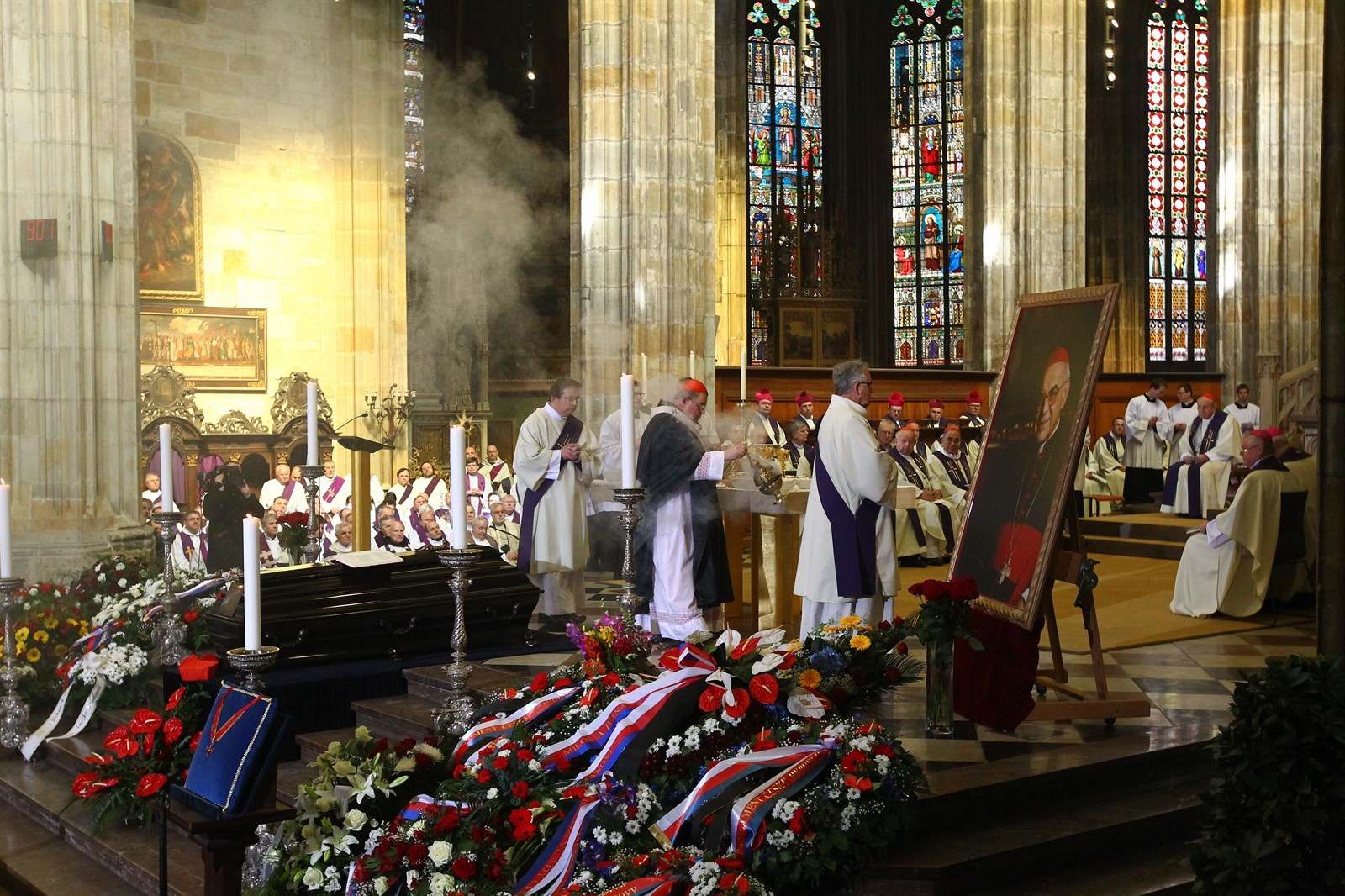 Lidé se mohli se zesnulým osobně rozloučit i v předchozích dnech - ve čtvrtek ve svatovítském chrámu a v pátek v kostele sv. Benedikta na Hradčanech.