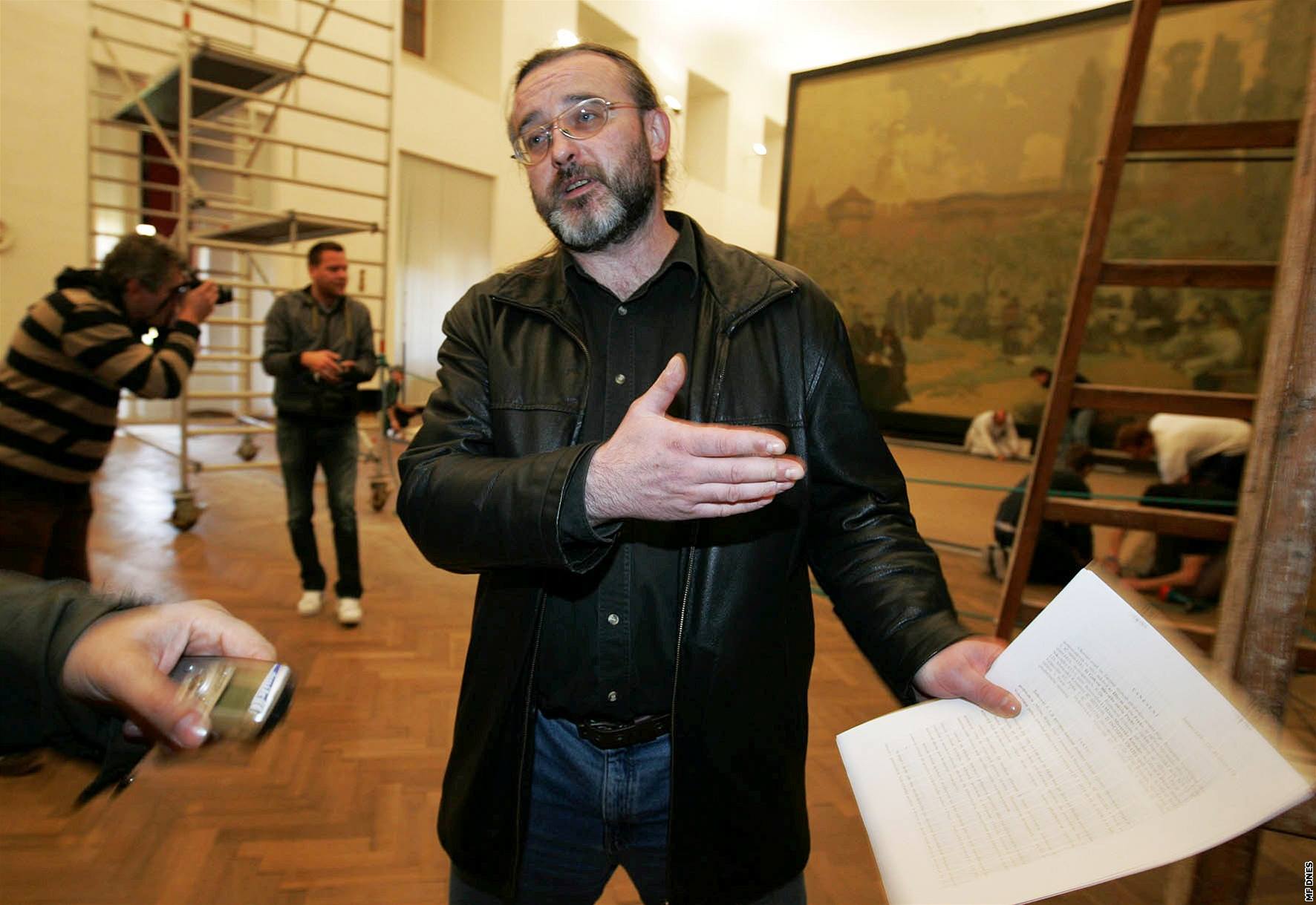 "Existuje podezření, že se někdo dopustil trestného činu maření výkonu úředního rozhodnutí," řekl Koucký, který ve sporu o vlastnictví Slovanské epopeje zastupuje vnuka secesního malíře Alfonse Muchy Johna,