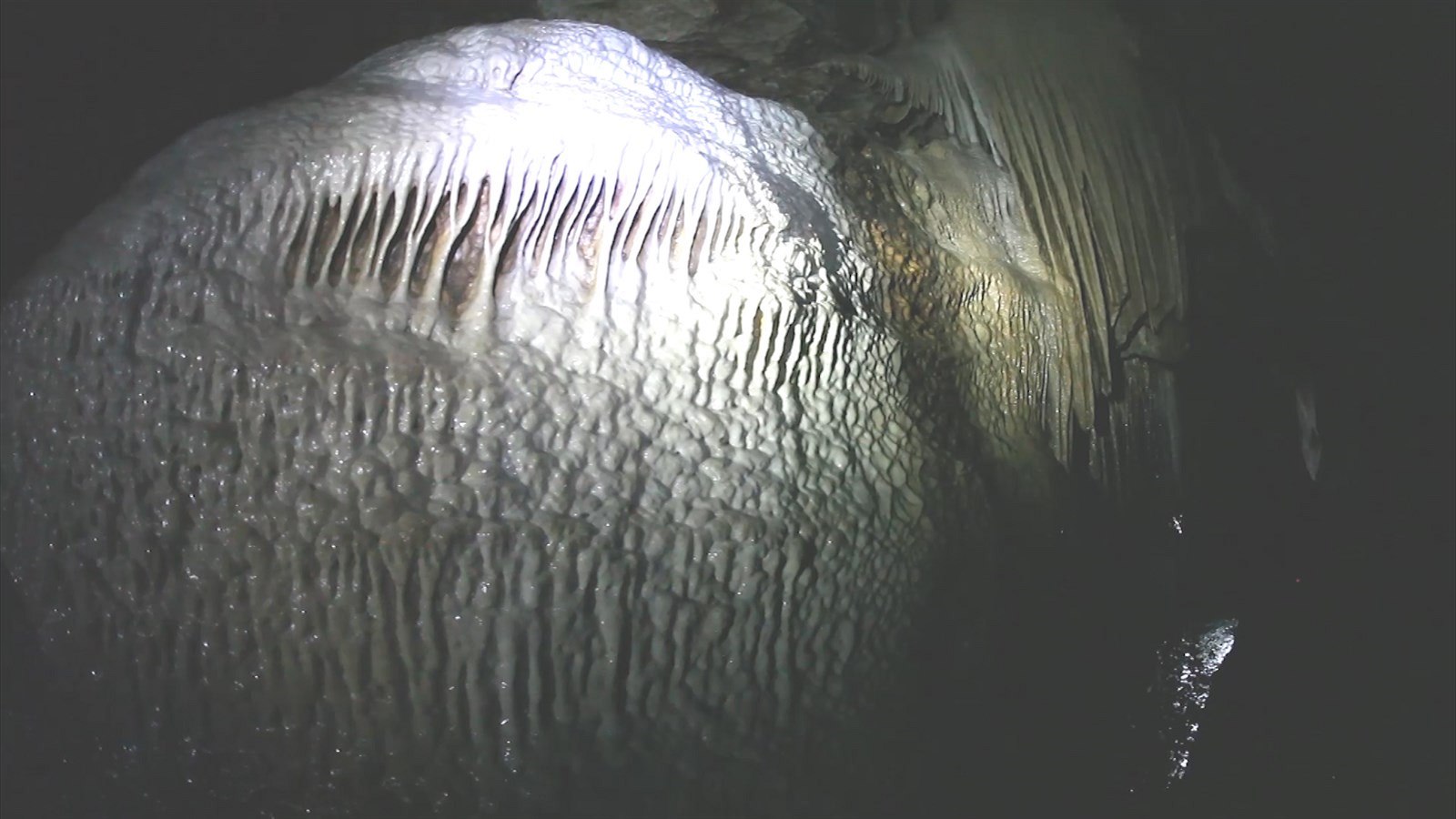 Krom toho však také jedinečný jeskynní systém. Těžko slovy popisovat to, co zde ve vápenci za miliony let vytvořila voda. Tak například. Například, zkuste si představit meandr řeky, několik zákrut. A pak si představte, jak by vypadal v 3D. A vy se budete prodírat jeho dnem, kde stále proudí voda. Představu, jak to v jeskyních vypadá, si uděláte v galerii.