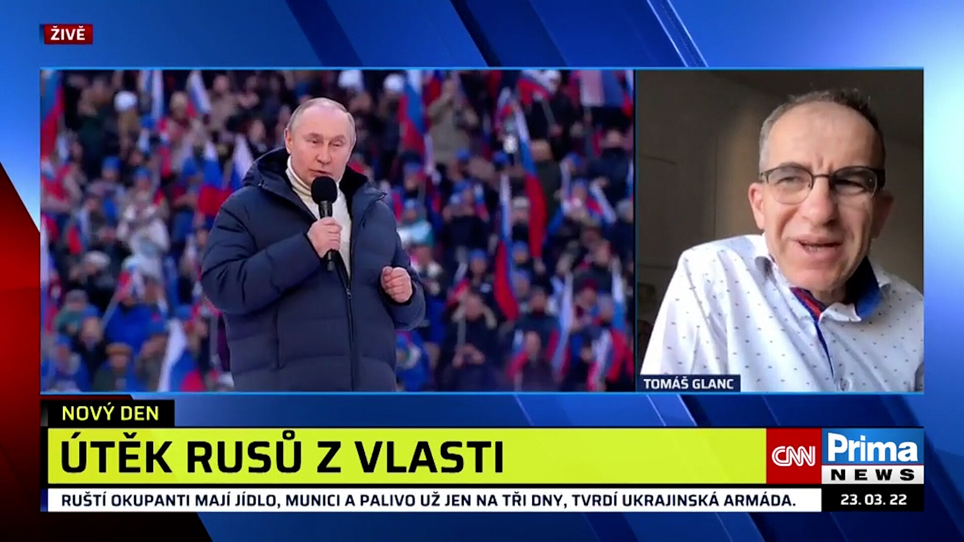 „Vidíme stupňování nenávistné konfrontační rétoriky, nese rysy uzavřeného propagandistického celku, kde je skutečnost nahrazena konstruktem,“ podotkl Glanc. Připomněl, že Putin loni v létě popíral existenci samostatného ukrajinského národa.