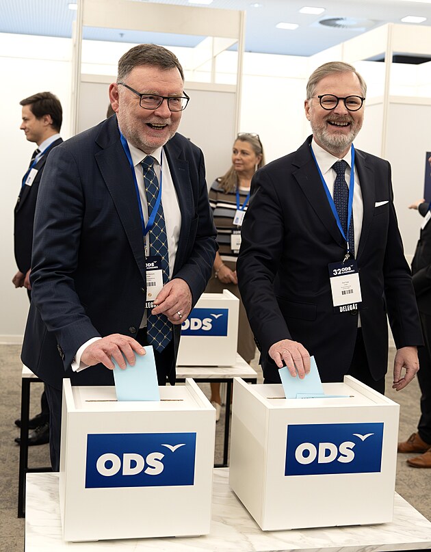Petr Fiala a Miloš Vystrčil na kongresu ODS. (17. ledna 2026)