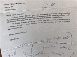 „V rámci ochrany klimatu, boje proti prokazatelně existujícímu antropogennímu globálnímu oteplování, zachování českých lesů a ušetření podrážek zaměstnanců České pošty Vás žádáme o ukončení zasílání newsletteru vydávaného Institutem Václava Klause,“ píše se v dopisu, který na svém profilu zveřejnil mluvčí Institutu Václava Klause Petr Macinka.
