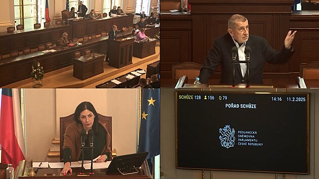 Babiš také před poslanci předčítal titulky, jak si americký prezident Trump telefonoval s ruským prezidentem Vladimirem Putinem a bavil se s ním o míru na Ukrajině. A zajímalo ho, zda kvůli tomu bude Trump označován za „dezoláta“, „chcimíra“ či „ruského švába“.