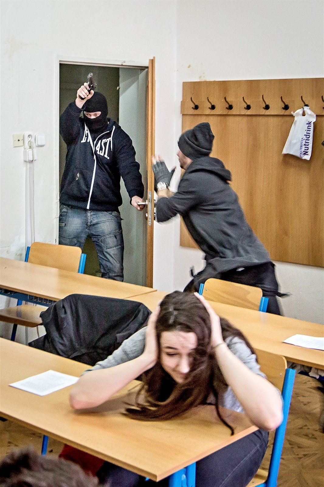 A právě připravenost i pohotová reakce je v takových případech důležitá. Do českobudějovické školy mezitím vtrhli dva figuranti s (plynovými) pistolemi a žáci se mají zabarikádovat, a pokud by se střelec dostal do třídy, pokusit se jej odzbrojit. Hlavně nezkoprnět.
