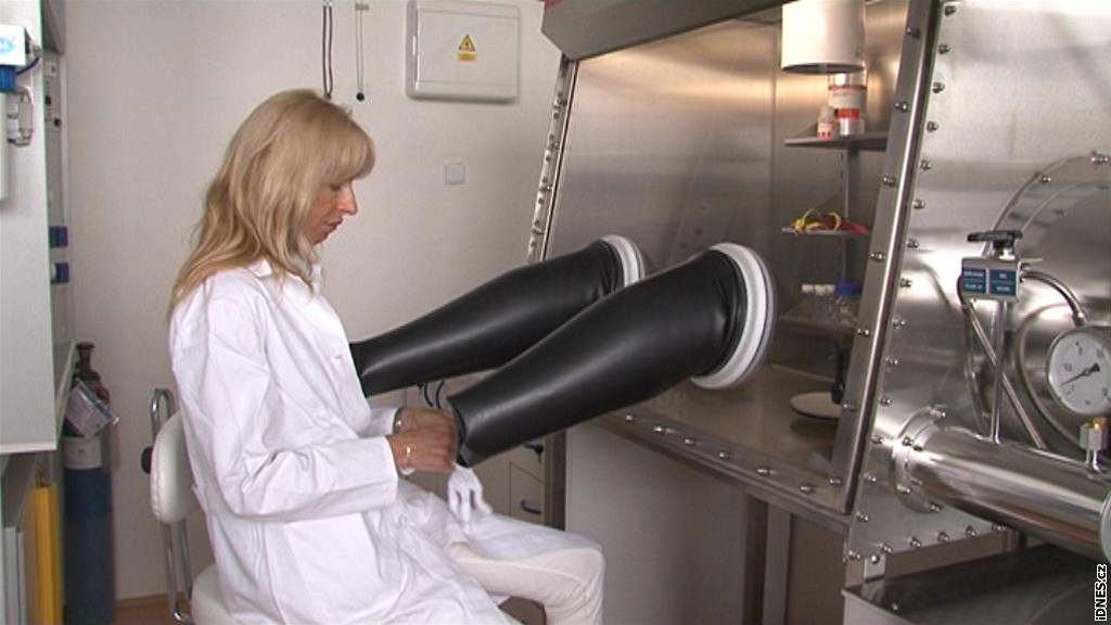 V jedné z laboratoří, kde se vyvíjejí například nové materiály pro elektrotechniku, dominuje obrovský skleněný box s dlouhými černými rukavicemi. Je to uzavřená skříň naplněná plynem argonem. Látky, které se zde zkoumají, se musí testovat ve specifickém prostředí bez kyslíku a vlhkosti.