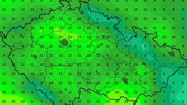 Nejnižší noční teploty 5 až 0, na Moravě místy až -2, nejvyšší denní pak 7 až 12 °C, na Moravě místy kolem 5 °C.