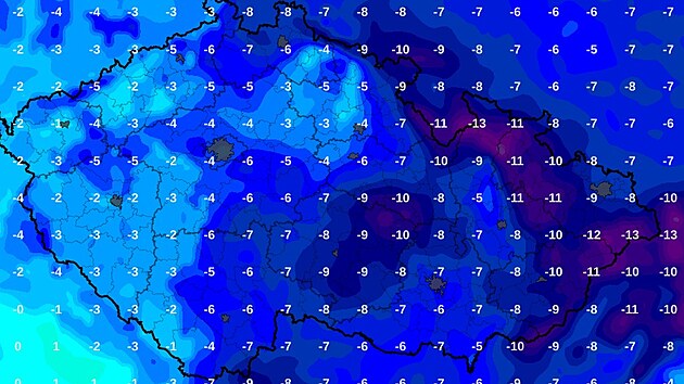 V noci na sobotu budou teploty nejnižší za celý únor, budou se pohybovat mezi -4 až -9 °C, v jihovýchodní polovině území mohou spadnout na -11 stupňů. V Čechách se začne během noci oteplovat.