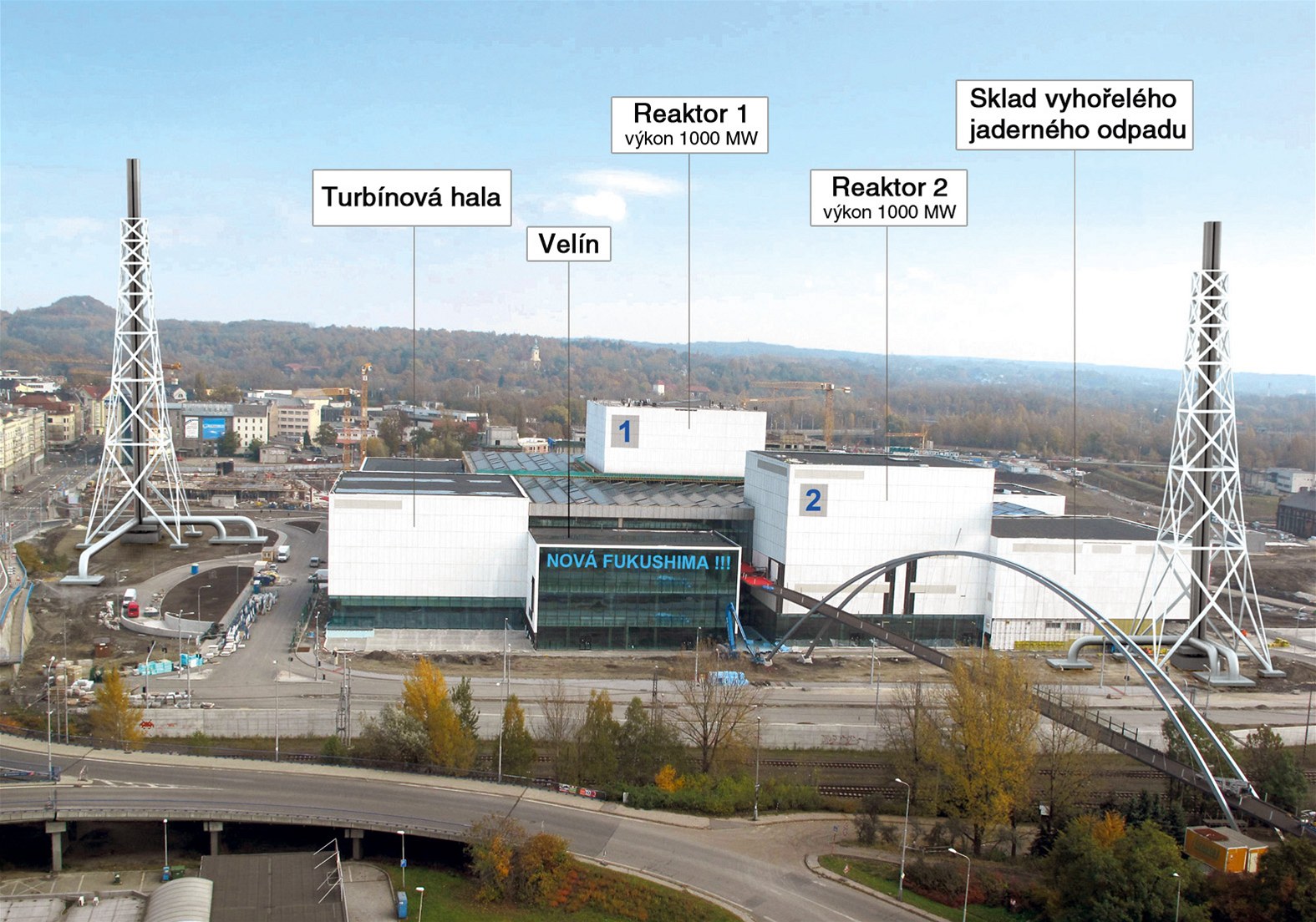 "Napadlo nás to ve chvíli, kdy jsme se dozvěděli, že se mezi Ostravany začíná říkat betonovému monstru Fukušima," vysvětlil Skórka. Betonovým monstrem myslí projekt Nová Karolina, který měl být perlou architektury. Místo toho ale podle kritiků připomíná několik krabic budících dojem právě dalšího Temelína.
