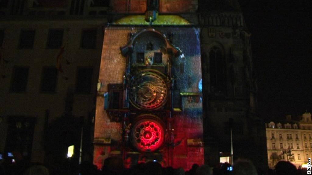 Věž s orlojem díky projekci například porostla břečťanem nebo z ní odpadávaly kameny. Současně z reproduktorů zněla hudba, která připomínala období válek, ale i davové oslavy.