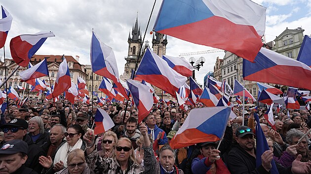 „Dnes jsme se tu sešli jako přátelé. Děkuji za vaši sílu a odvahu přijít. Současná vláda se přátelí s potomky banderovců,“ řekl šéf hnutí SPD Tomio Okamura před plným Staroměstským náměstí. Dav na to konto začal skandovat „Hanba!“