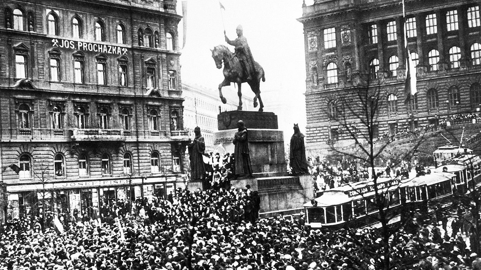 Nic nepomohla snaha představitelů Národního výboru volat do redakcí, aby zprávu dementovaly. Tisíce lidí už byly v ulicích, na domech se začaly objevovat červenobílé prapory. Nadšení Pražané začali strhávat z budov symboly nenáviděné monarchie, především rakouské orlice a posléze se vydali k soše svatého Václava.