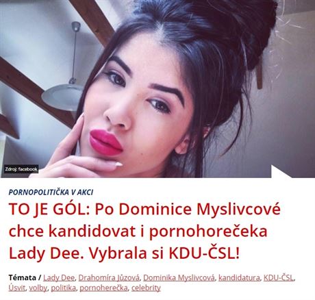 Možná to zní nevinně, ale uvědomme si, jak lidé vnímají a zpracovávají informace. Už se nezamyslí nad tím, že je to nesmysl a že i ten bulvár to tak úplně nebral od začátku vážně. Stačí ale titulek s poselstvím, že pornoherečka bude kandidovat za KDU-ČSL. A jistě, že to té straně ve volbách může uškodit. Jenže, koho to zajímá? Žijeme v době facebookové žurnalistiky.
