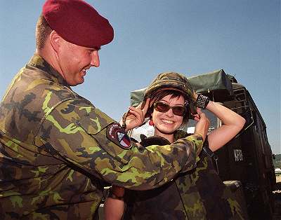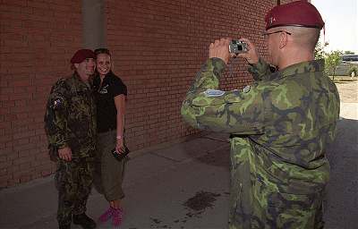 Češi převzali velení v Kosovu - Zpěvačka Monika Absolonová se nechává vyfotit s vojáky v Kosovu.