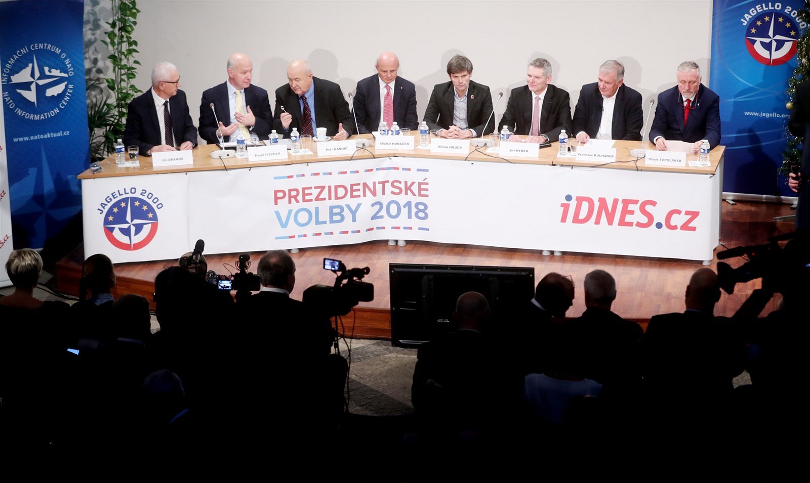 V úterní moderované debatě osmi prezidentských kandidátů o obraně, bezpečnosti a zahraniční politice, kterou z pražského Cevro Institutu v živém přenosu vysílal server iDNES.cz, měli Jiří Drahoš, Pavel Fischer, Petr Hannig, Marek Hilšer, Michal Horáček, Jiří Hynek, Vratislav Kulhánek a Mirek Topolánek odpovědět písemně na pět relativně jednoduchých otázek.