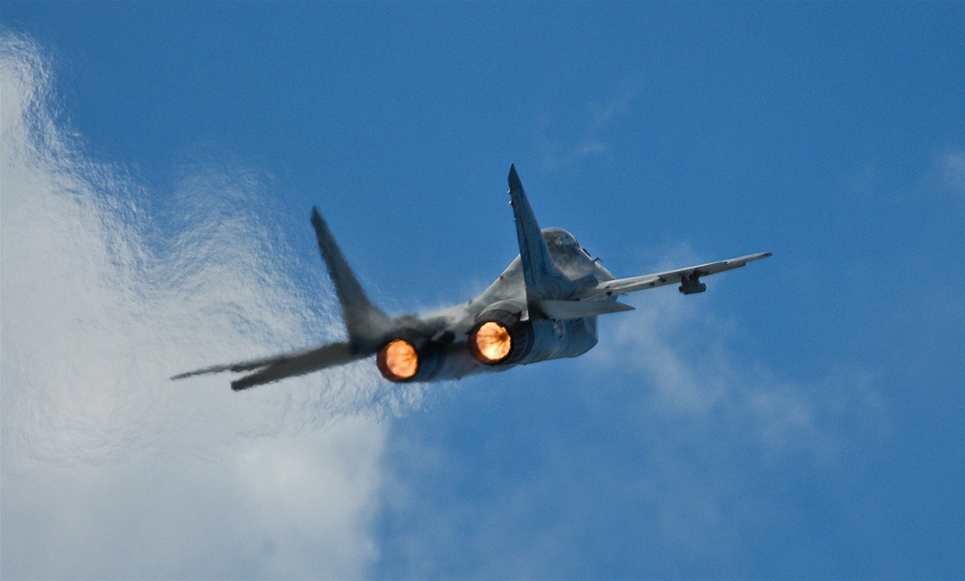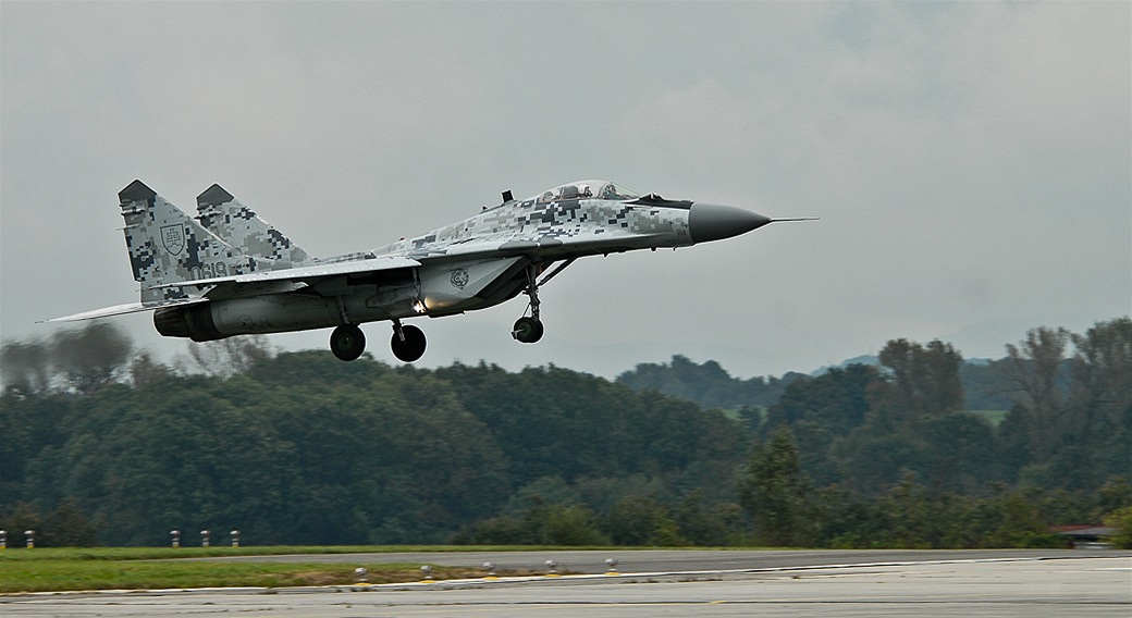 Letouny MiG-29 slovenských vzdušných se loučí se Dny NATO v Ostravě.