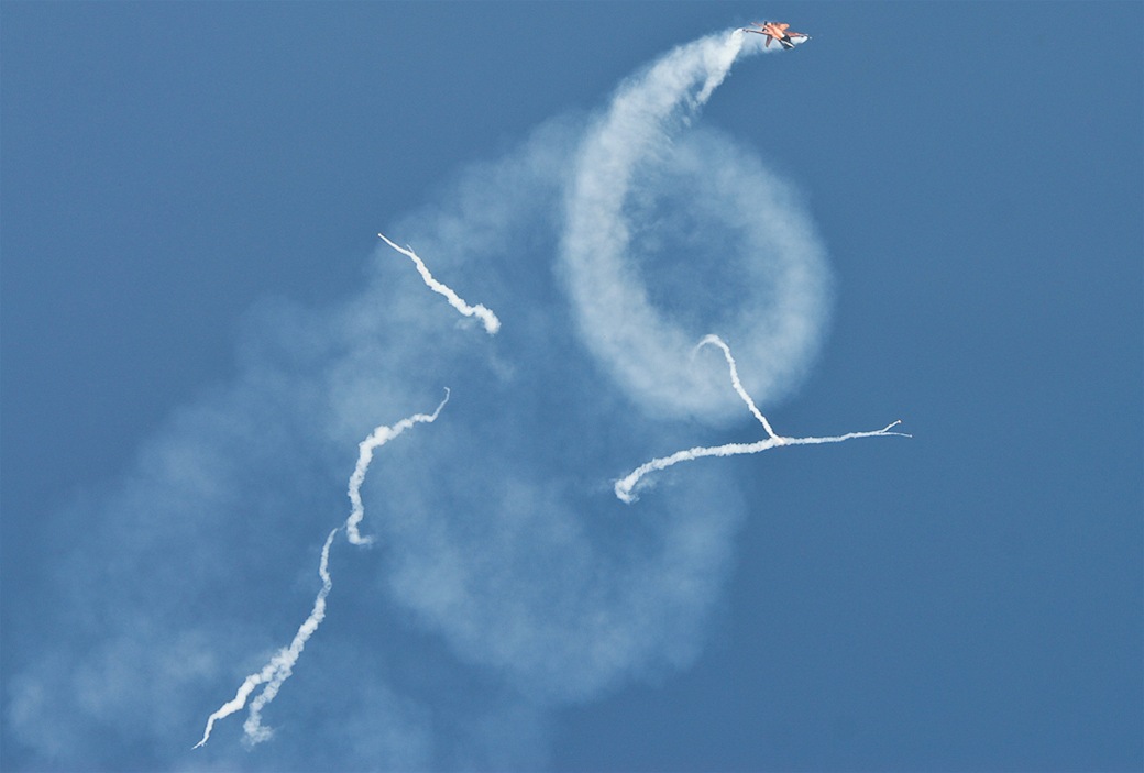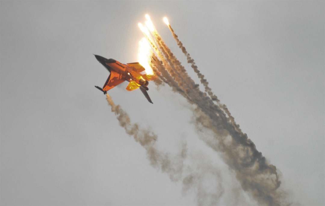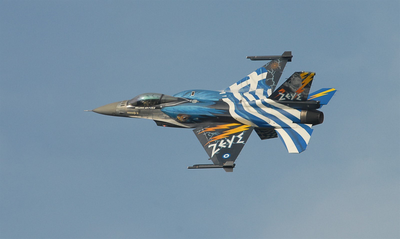 Letoun F-16 řeckého Zeus týmu na Dnech NATO v Ostravě předvedl dynamickou ukázku umocněnou atraktivní stylizací hudebním sestřihem, v němž zazněla krátce i řecká hymna.