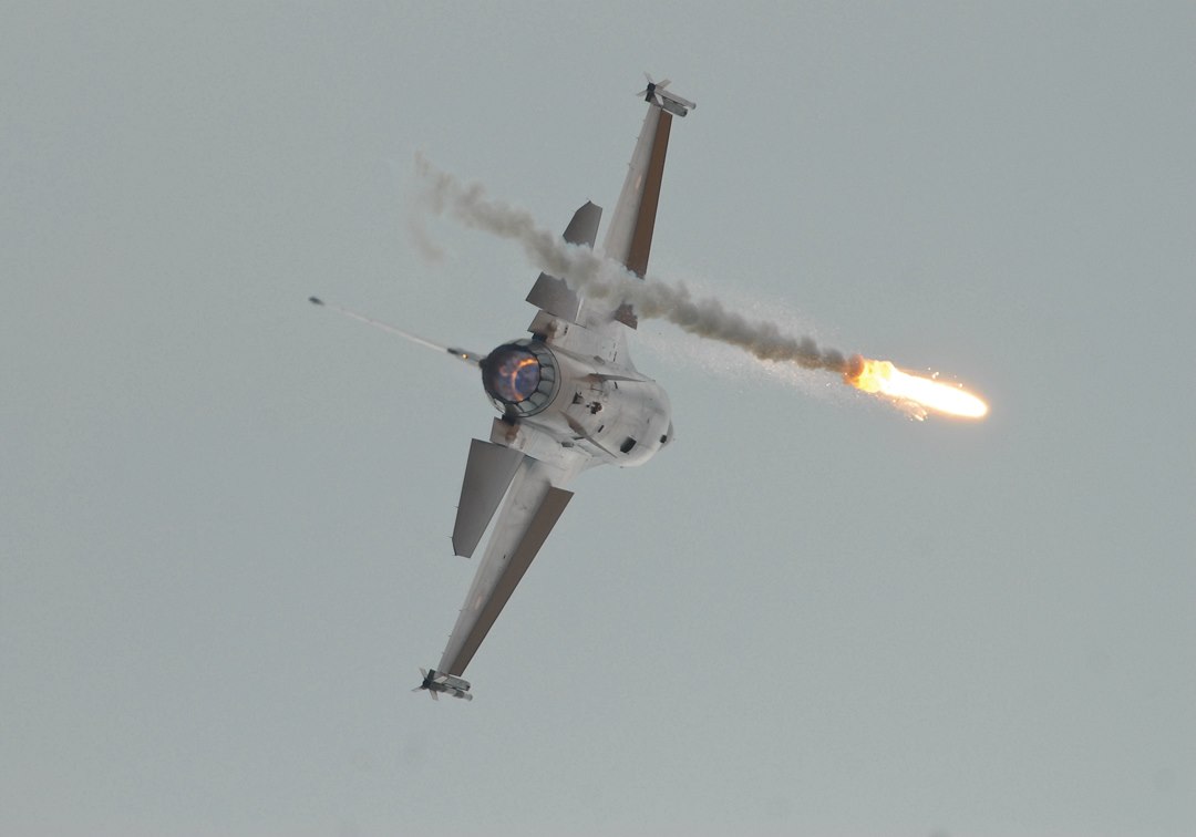 Letová ukázka stroje F-16 dánského letectva na Dnech NATO v Ostravě