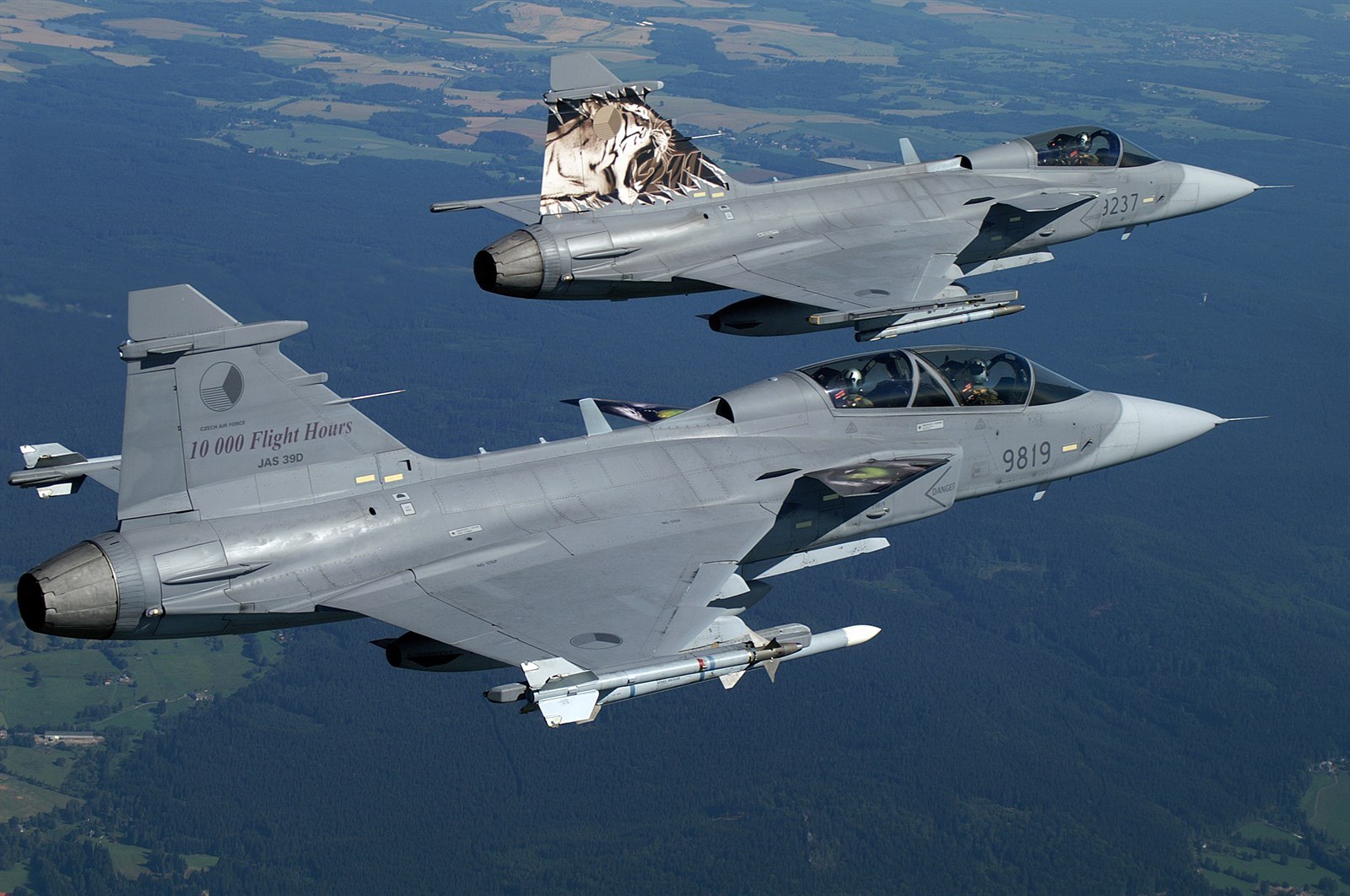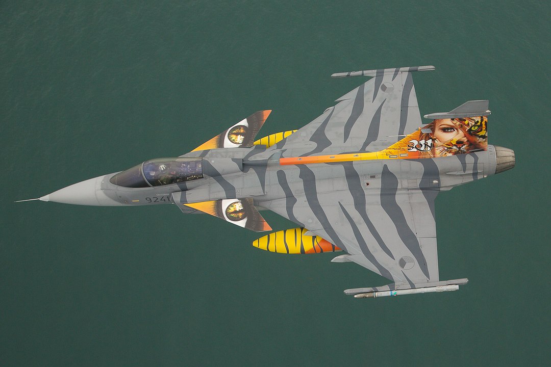 Motiv českého gripenu pro cvičení tygřích letek v roce 2009 a zbarvení letounu k náletu 10 tisíc hodin českých letců v gripenech