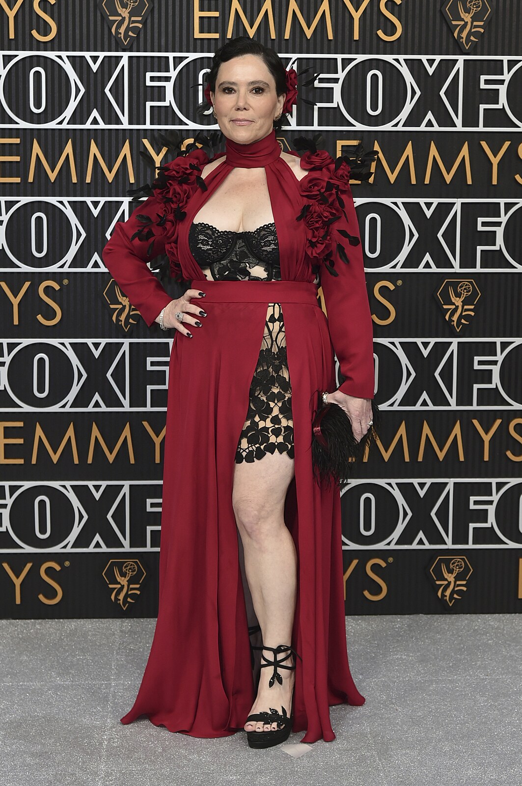 Juliette Lewisová oblékla rudý model s metalickými efekty.