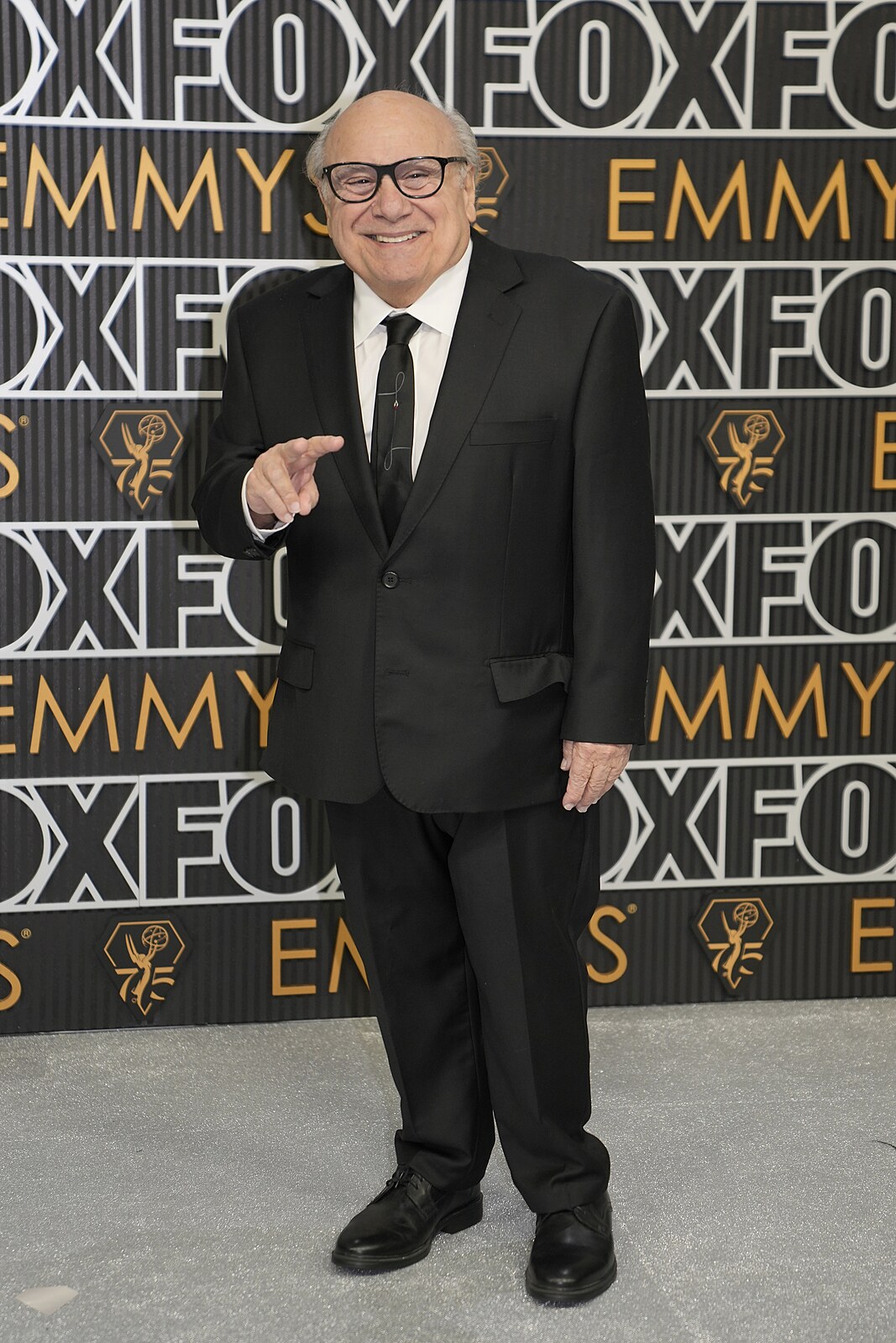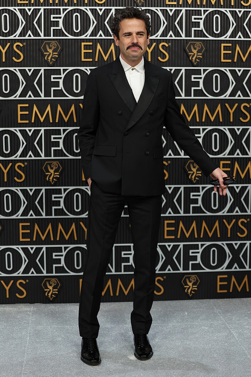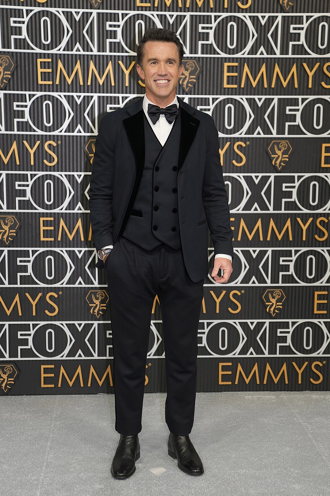 Rob McElhenney dorazil v černém smokingu s vestou.