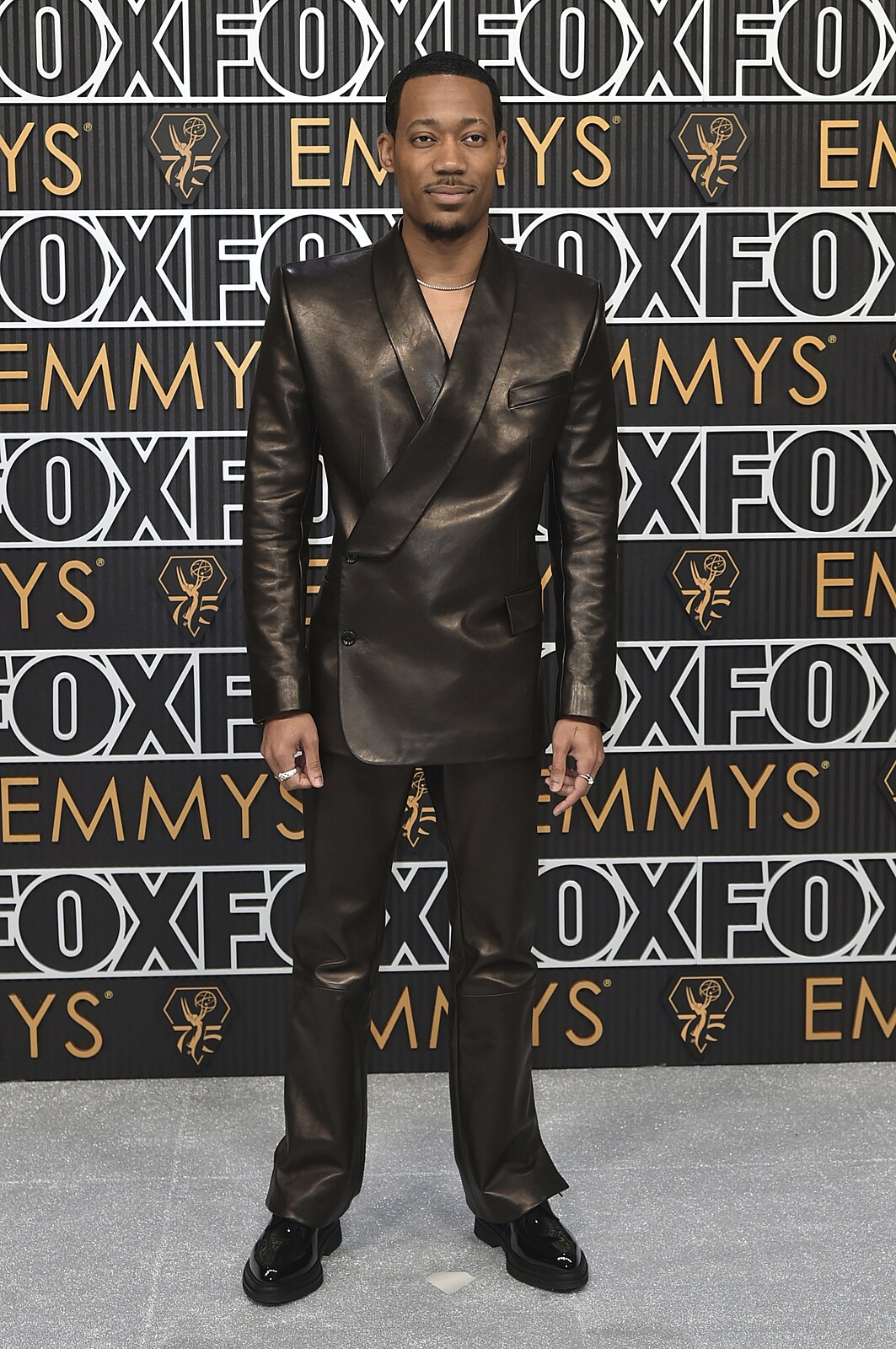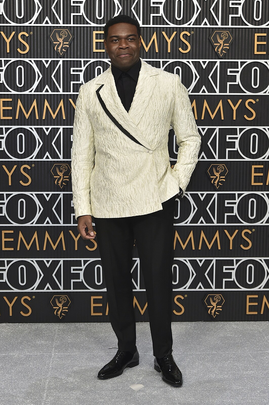 Sam Richardson měl světlé smokingové sako z netradiční látky.