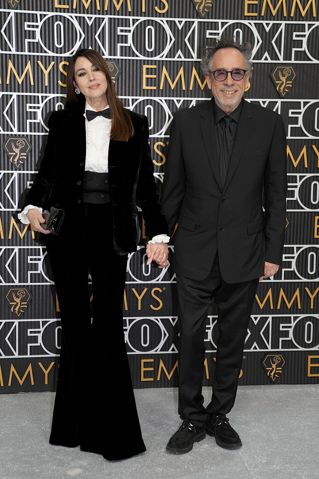 Na cenách Emmy nechyběly ani páry. herečka Monica Bellucci přišla ruku v ruce s režisérem Timem Burtonem.