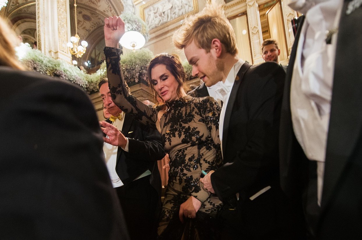 Brooke Shieldsová s rakouským podnikatelem Lugnerem na Plese v opeře ve Vídni. (4. února 2016)