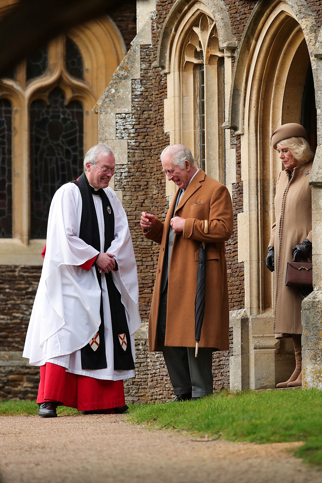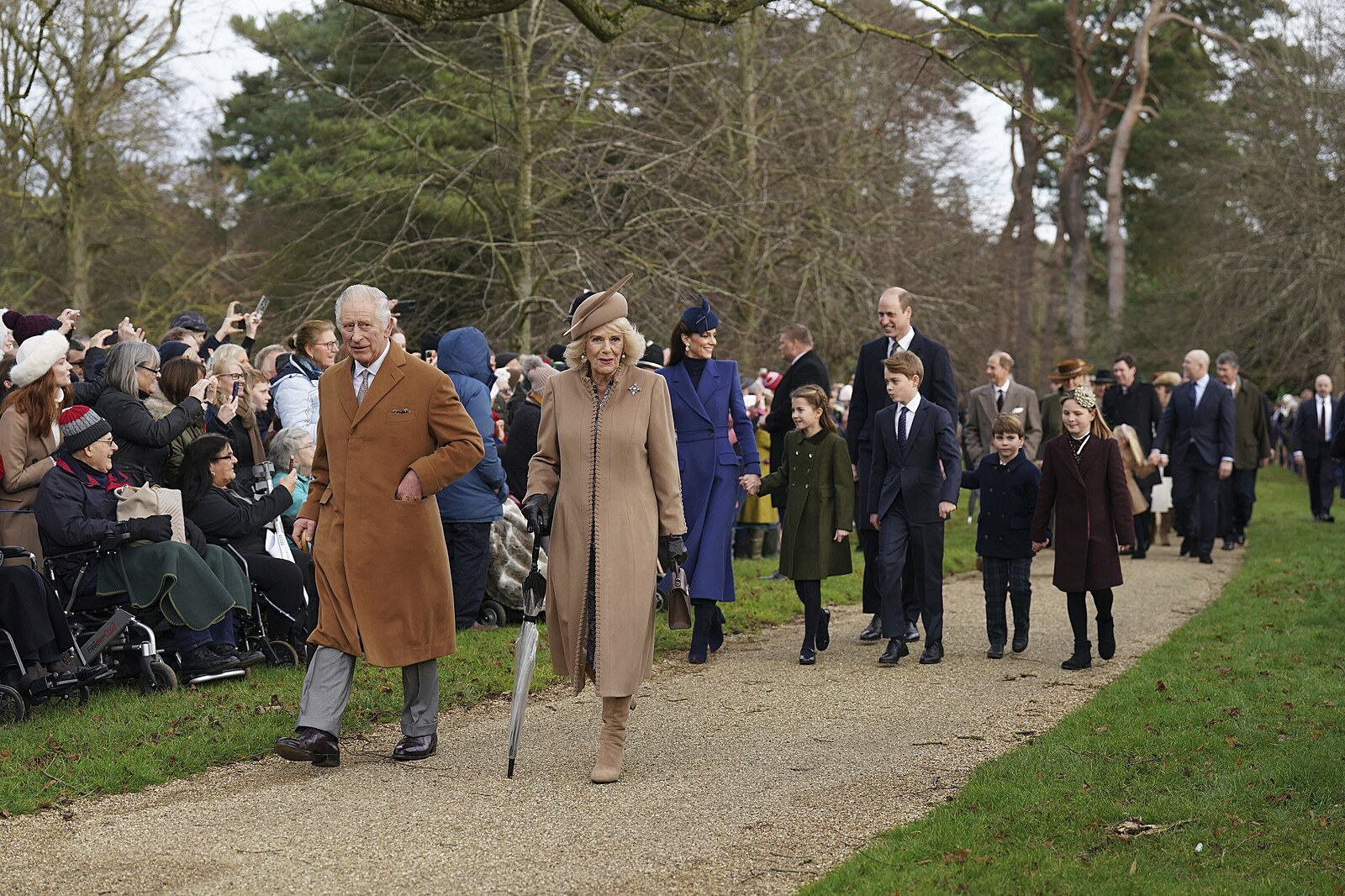 Král Karel III. a královna Camilla (25. prosince 2023)