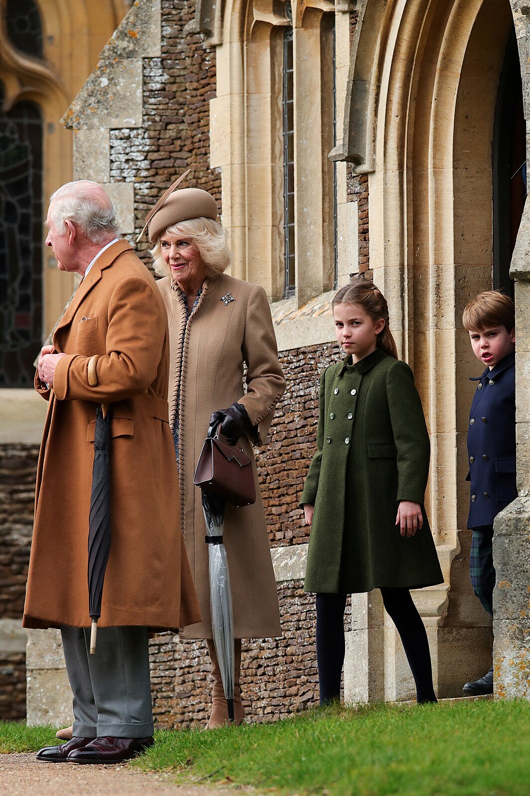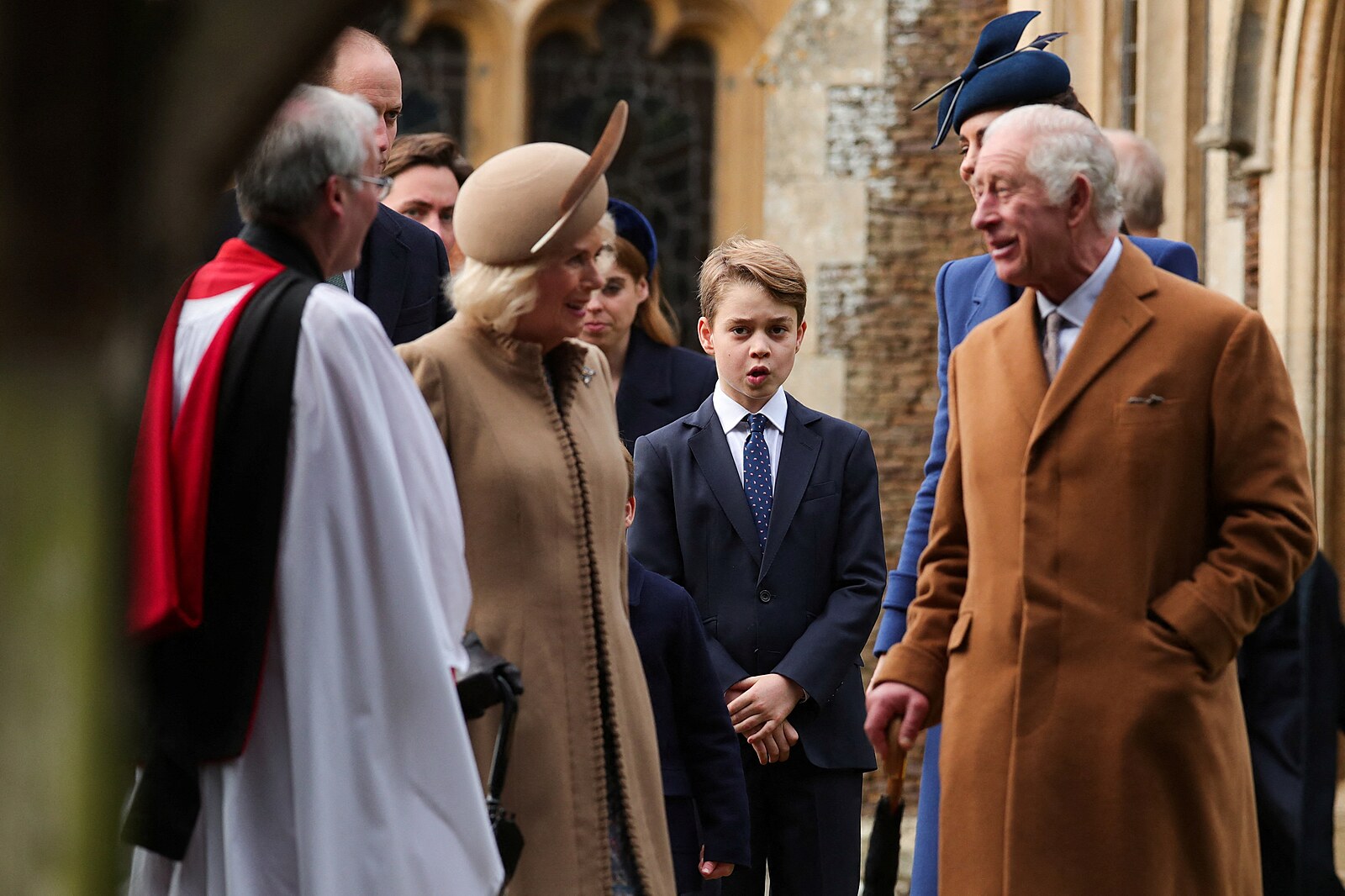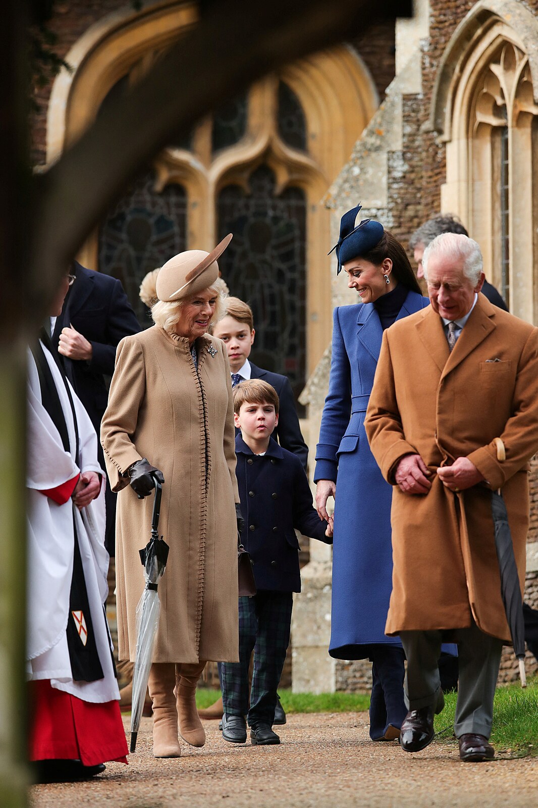Na mši nechyběl ani známý vtipálek, princ Louis. Ten však nebyl bezprostředně po bohoslužbě zrovna vánočně naladěn a objektivy fotografů ho stejně jako jeho sestru Charlotte příliš nepotěšily.