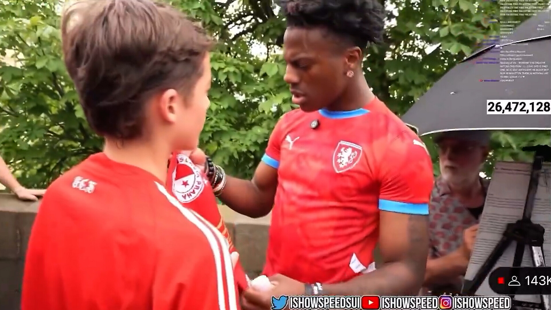 Procházku Prahou Speed streamoval na Youtube. Nejprve upozornil, že jediné, co z České republiky zná, že brankář Petr Čech. Nejdřív si popovídal s pár turisty. Mezitím jeho stream zaznamenali pražští fanoušci a začala se rozrůstat skupinka, která ho pronásledovala.