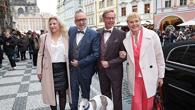 Na místo přijeli černou limuzínou, z níž vystoupili i se svým pejskem Tobiášem. Za svědkyně jim šly někdejší televizní hlasatelka Marie Retková a herečka a dabérka Jitka Ježková. Obřad vedl současný primátor Prahy Bohuslav Svoboda.