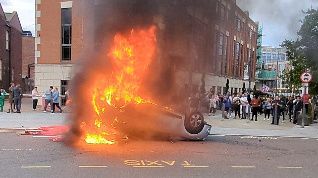 Při násilnostech byla vyrabována policejní stanice a vzplála sousední budova charitativní organizace Citizens Advice, uvedla BBC. Stanice Sky News informovala, že hořela policejní budova, přičemž nepokoje vrcholily střetem mezi demonstranty a policií před místní mešitou.