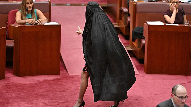 „Nechtěli zakázat burku, přesto mi odepřeli právo ji nosit v parlamentu. V parlamentu neplatí žádný dress code, přesto mi není dovoleno ji nosit. Pro mě je to tedy pokrytecké,“ reagovala jednasedmdesátiletá Hansonová. Tato vůdkyně protiimigrační menšinové strany One Nation v pondělí vešla do senátu v burce, zahalená od hlavy k patě.