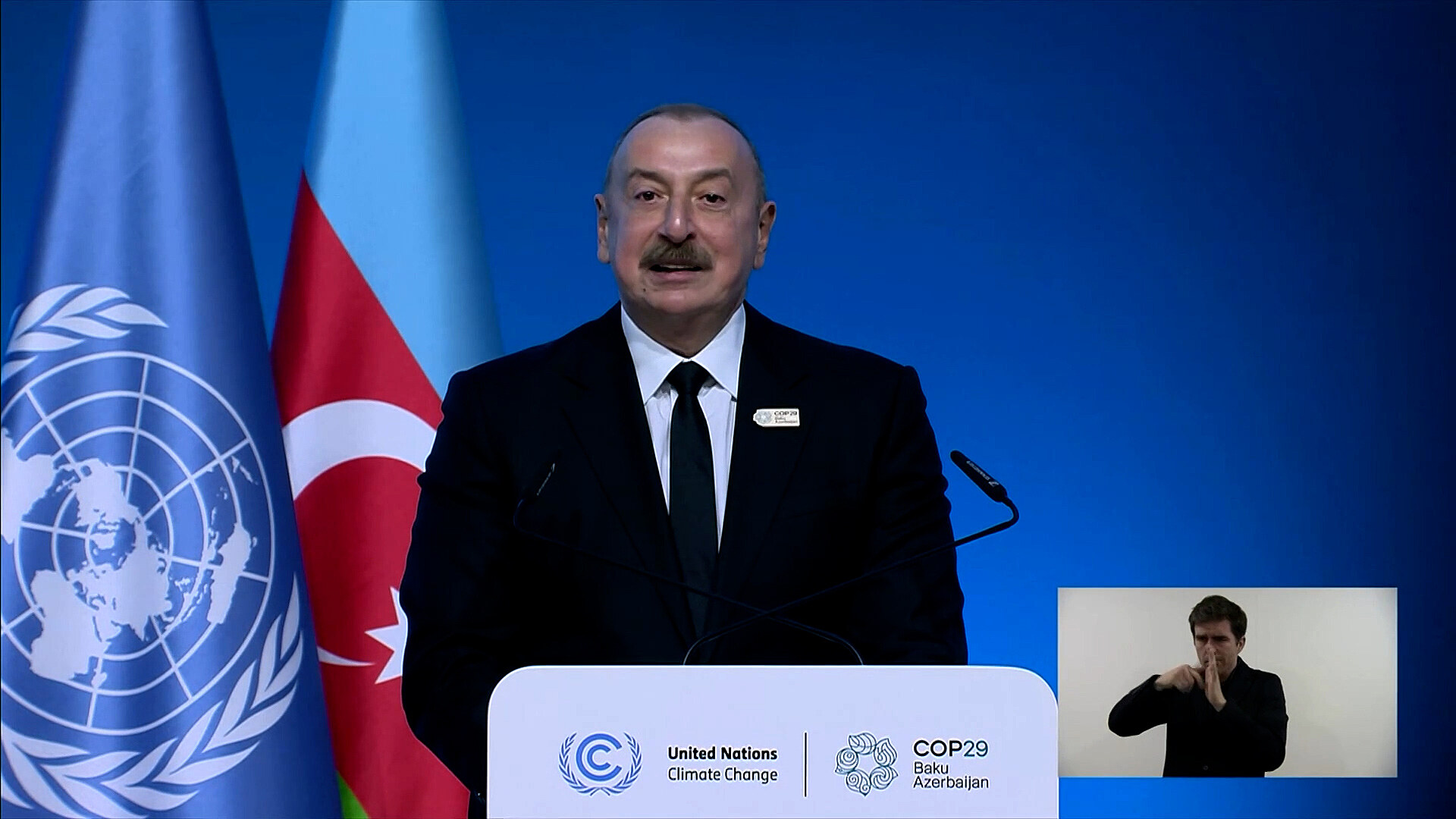 „Podíl Ázerbájdžánu na celosvětových emisích zemního plynu činí pouze 0,1 procenta,“ tvrdil dále prezident a stěžoval si na to, co nazval „koordinovanou a dobře organizovanou kampaní pomluv a vydírání“ vůči jeho zemi poté, co byla zvolena jako hostitelská země pro konferenci COP29.