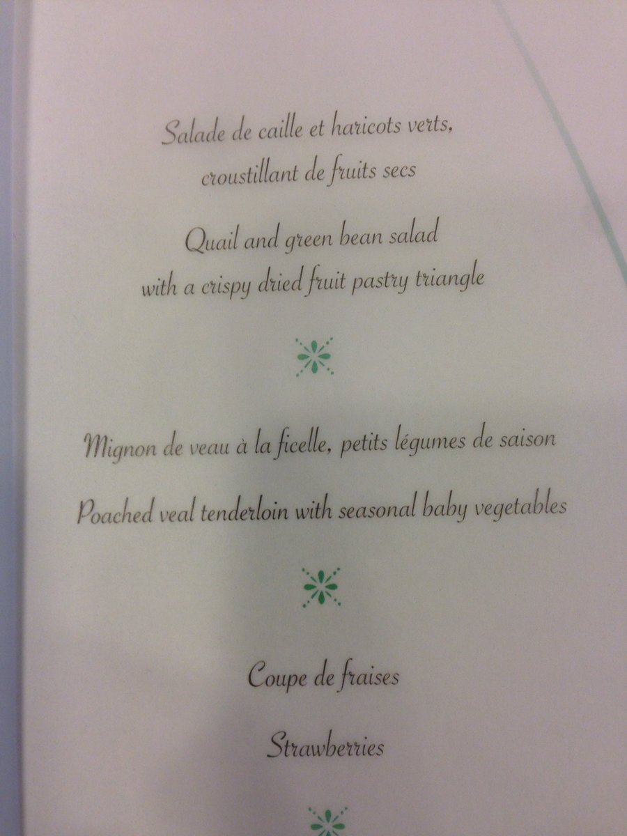 Místo typických pokrmů britské kuchyně podávali bruselští kuchaři salát se zelenými fazolkami, křepelkou a sušeným ovocem, dále pošírovanou telecí svíčkou se sezónní zeleninou a jako dezert plátky jahod.