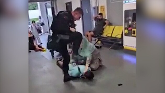 Amar Minhas, jenž byl v té době na letišti se svou rodinou, řekl stanici BBC, že policisté přitiskli jednoho muže ke zdi, načež se jiný muž pokusil zasáhnout a strhla se rvačka. Onen přitisknutý muž rozdával rány, až ho policista dostal na zem, kde do něj kopal.