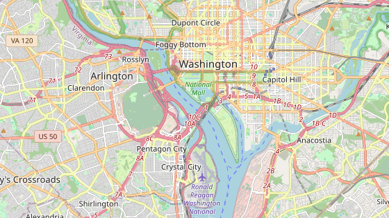 Vyrůst má na druhém břehu řeky Potomac, než leží Bílý dům nebo Kapitol, na začátku Arlingtonského mostu, kde je velký kruhový objezd. To je zároveň přibližovací koridor pro lety ze severu na letiště Ronalda Reagana, které je na pravém břehu řeky Potomac.