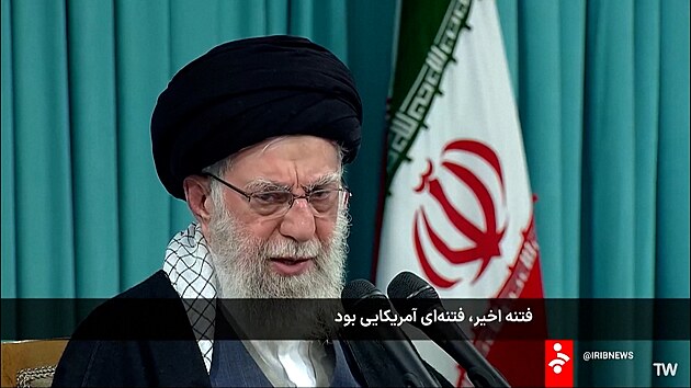„Nejnovější vzpoura se lišila v tom, že se do ní osobně zapojil americký prezident,“ prohlásil Chameneí. Dodal, že Trump je zodpovědný za oběti a škody, které způsobil íránskému národu.