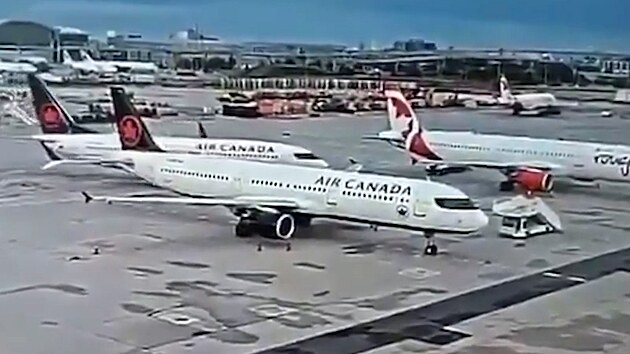 Záběry incidentu, které se objevily na sociálních sítích, ukazují, jak je letoun společnosti Air Canada pomalu tažen do prostoru mezi dvěma již zaparkovanými stroji. V okamžiku, kdy se jeho křídla přiblíží ke křídlům sousedních letadel, dojde ke kontaktu a následnému poškození všech tří.