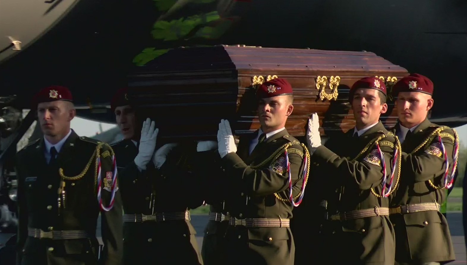 Při vynášení ostatků z letadla na katafalk zazněla i píseň Čechy krásné, Čechy mé, což je píseň která provázela návrat kardinála Berana z koncentračního tábora. Vojenský kaplan Jaroslav Knichal pronesl krátkou modlitbu. „Jeho život, ať je pro nás vzácným svědectvím věrnosti Kristu, církvi a lásky k vlasti, a to na přímluvy sv. Vojtěcha, sv. Anežky České a všech našich zemských patronů,“ uvedl.