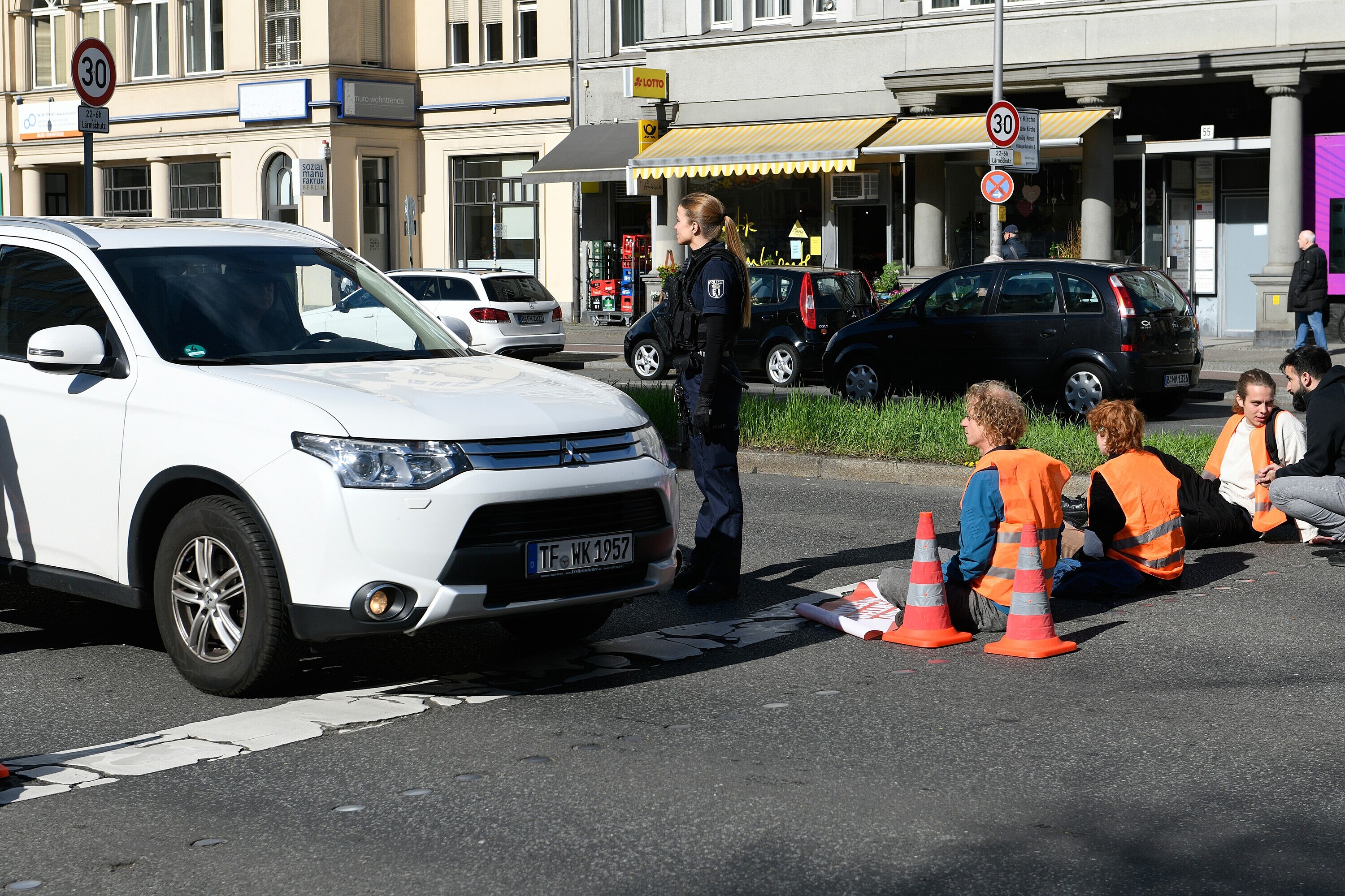V pondělí už protestní pochody začaly naostro a aktivisté podle policie zablokovali dopravu na více než třiceti místech v Berlíně. Obsadili hlavní silnice, křižovatky i část městského okruhu: auta stála na širokém bulváru u Vítězného sloupu v centru města u parku Tiergarten, na městské dálnici A100 v západní části města a v rezidenční čtvrti Charlottenburg. Na mnoha místech řidičům vzniklo zhruba hodinové zpoždění. I zde podle berlínských hasičů uvázlo v blokádách několik požárních vozů a vozidel první pomoci.