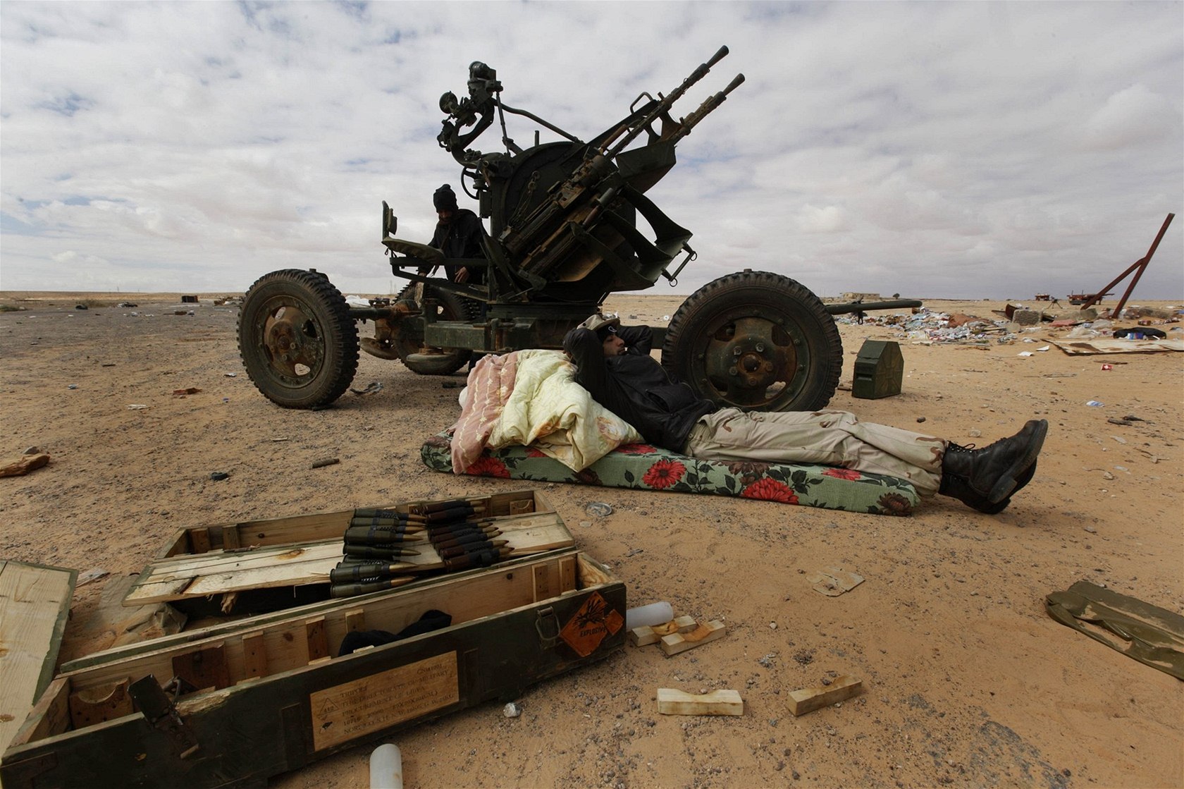 Libyjští povstalci poblíž města Brega (10. března 2011)