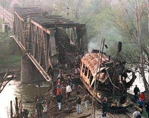 ![]() Trosky vlaku, který zasáhlo letadlo NATO |