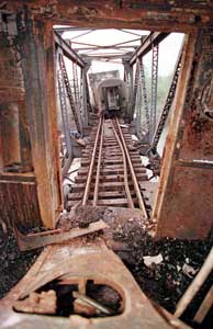 ![]() Zbytky bombardovaného vlaku |