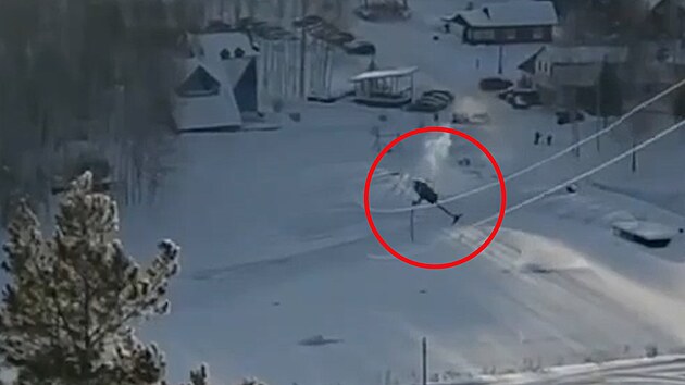 Jednomu z očitých svědků se podařilo zachytit moment nehody na video. Na záběrech je vidět zasněžené údolí, nad kterým nebezpečně nízko prolétá vrtulník. Stroj zavadí o jedno z nosných lan lanovky, což se posádce stane osudným. Helikoptéra se zřítí k zemi, při dopadu se převrací a rozlamuje na dvě části.