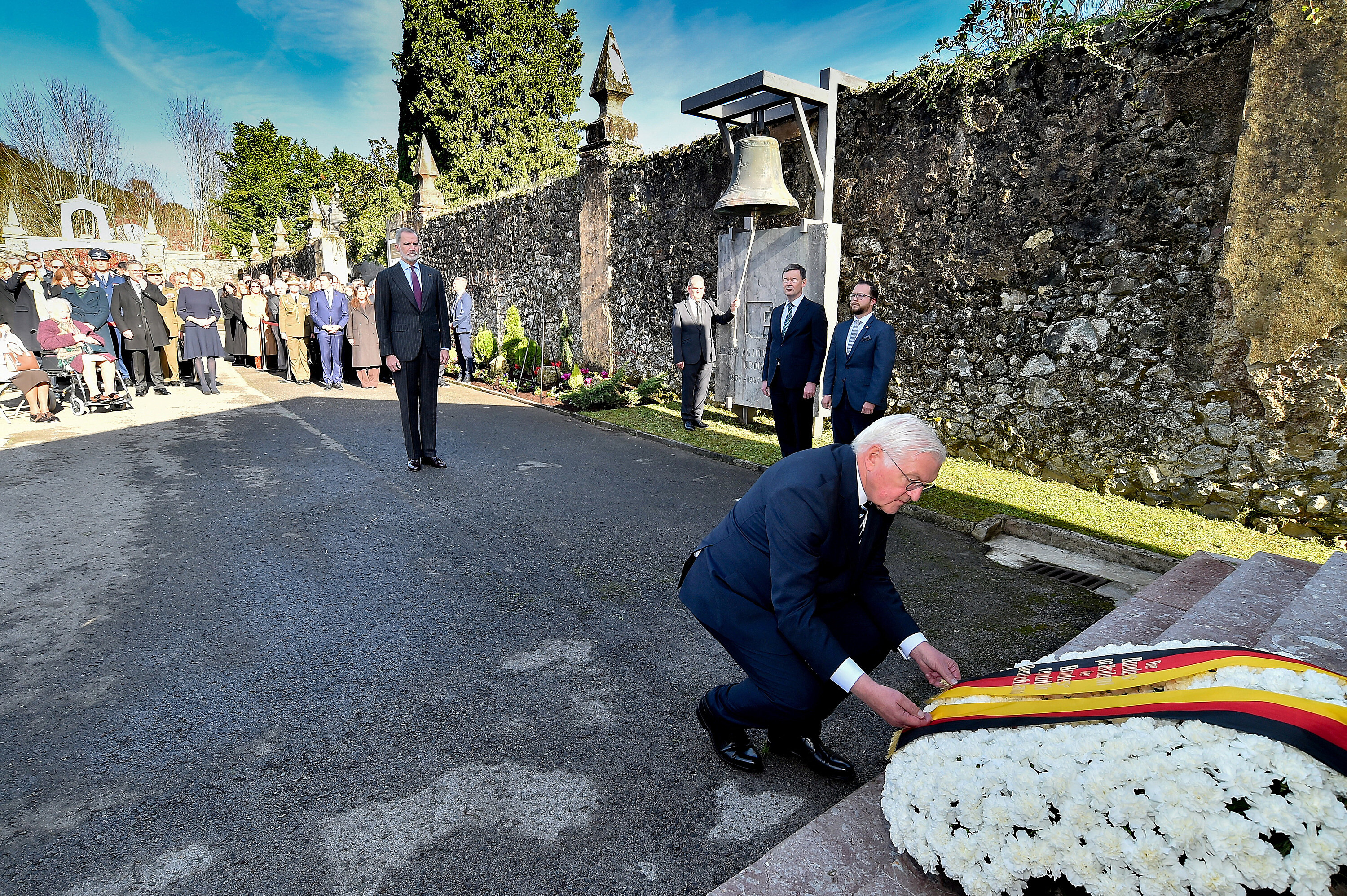 Ceremonie na hřbitově se zúčastnil prezident s manželkou Elke Büdenbenderovou a také španělský král Felipe VI.